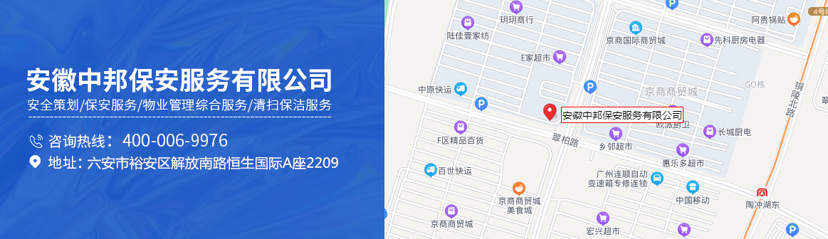中邦服務簡介 安徽中邦保安服務有限公司總公司成立于2019年。公司 成立以來,始終以“文明值勤、優(yōu)良服務、客戶至上、安全為先” 為宗旨,以保一方平安為已任,面向社會各界等提供有償保安護 衛、技術防范、保安培訓,是一家專業化保安服務公司。目前, 公司下為200多家客戶單位提供周到安全的保安服務,遍布全省 及周邊地區,現有各類專業人員和保安員2000余名。 中邦服務宗旨 安徽中邦保安服務有限公司是為適...